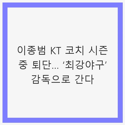 👉이종범 KT 코치 시즌 중 퇴단… ‘최강야구’ 감독으로 간다 바로가기