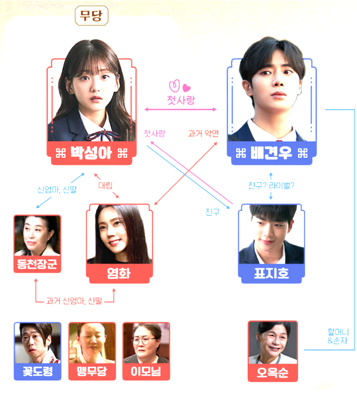 - 박성아(조이현): 18세, 낮에는 여고생, 밤에는 무당