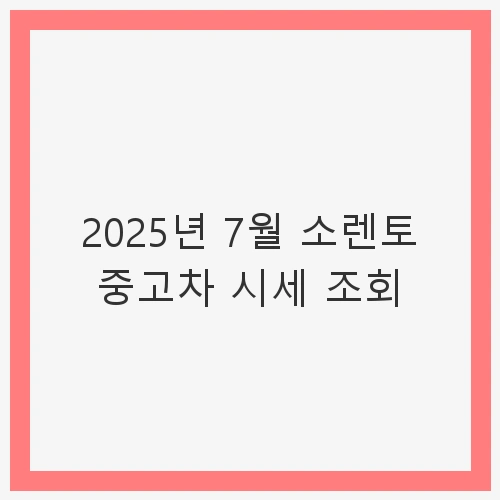 안녕하세요! 자동차 인플루언서 '네고킴' 김민우입니다. 오늘은 2025년 7월 소렌토 중고차 시세에 대한 정보를 소개하고자 합니다. 현대자동차의 중형 SUV인 소렌토는 뛰어난 상품성과 인기를 자랑하며, 매년 많은 소비자들에게 사랑을 받고 있습니다. 특히, 2025년형 소렌토는 편의 사양이 대폭 개선되면서 다시 한번 소비자들의 주목을 받고 있습니다. 그에 따라 중고차 시장에서도 소렌토의 시세가 어떻게 변화하고 있는지 살펴보는 것이 중요합니다. 이번 블로그 포스팅에서는 소렌토의 중고차 시세, 트림별 가격과 특징, 그리고 향후 시장 전망에 대해 깊이 있는 분석을 제공할 것입니다.