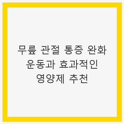안녕하세요, 여러분. 오늘은 많은 분들이 고민하고 계시는 무릎 관절 통증 완화 운동과 효과적인 영양제 추천에 대해 이야기해 보려고 합니다. 저도 운동을 좋아하는 한 사람으로서, 무릎 통증을 경험하게 되면서 관절 건강의 중요성을 절실히 느꼈습니다. 최근 몇 년간의 활동적인 라이프스타일 덕분에 무릎이 아플 일이 많았고, 그러면서 통증을 줄이는 방법에 대해 많이 고민하게 되었어요. 이번 포스트에서는 무릎 관절 통증을 완화하는 운동과 함께 효과적인 영양제들을 소개할 예정입니다. 여러분의 무릎 건강도 꼭 지켜주세요!